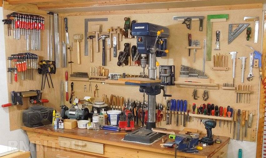 Рассмотрим несколько идей самостоятельной организации хранения ручных инструментов в мастерской.