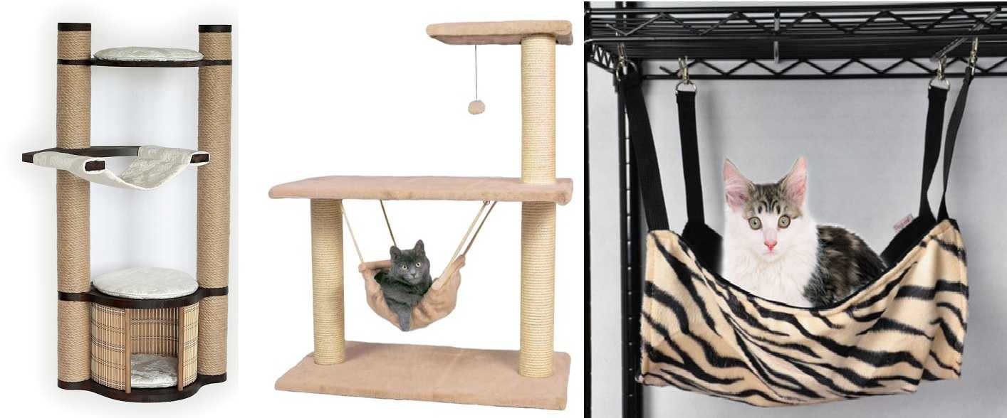 Канаты, горки и лесенки также больше подходят по вкусу подвижным молодым животным, хотя и взрослые коты порою не прочь «подтянуться на турнике».