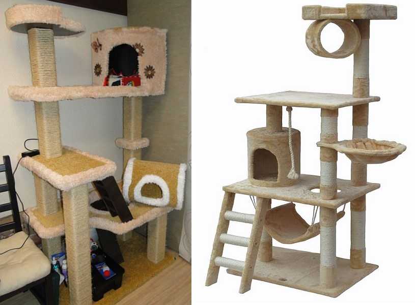 Наиболее функциональными вариантами являются многоуровневые кошачьи комплексы из фанеры, укомплектованные двумя — тремя смотровыми площадками. Высота конструкций будет зависеть от темперамента животного.