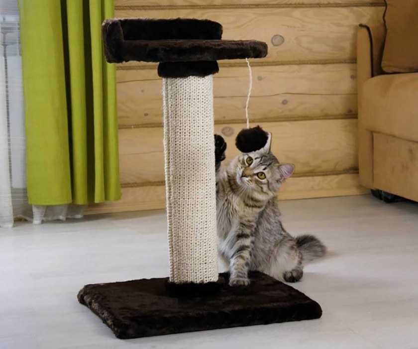 Это одна из самых популярных изготовленных своими руками когтеточек. Основная задача — выбрать правильную высоту столбика. Малыши довольствуются полуметровым приспособлением, а взрослым животным интересней будут столбики от 70 см и выше. Такие конструкции имеют различия по сложности сборки: