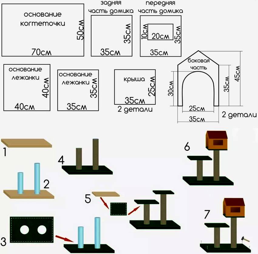 Кошачий комплекс может состоять из нескольких элементов, которые изготавливаются из различных подручных материалов. Поэтому: