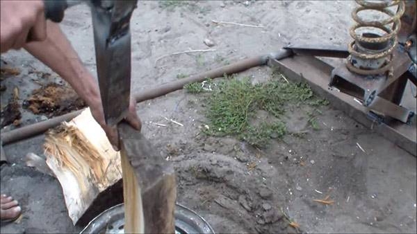 В заключение темы про ручной дровокол остается добавить только одно – сказать, что такой дровокол позволяет рубить поленья не только на дрова большого размера, но и колоть их на очень тонкие щепки. Изготовить лучины для розжига печи или мангала таким способом весьма несложно.