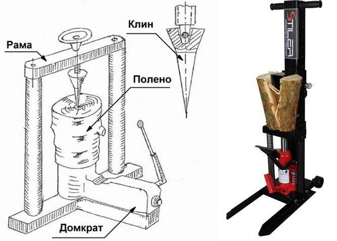 - Конструктивные особенности – реечные, вертикальные, конусные, горизонтальные и так далее, существует масса конструкций для колки дров.