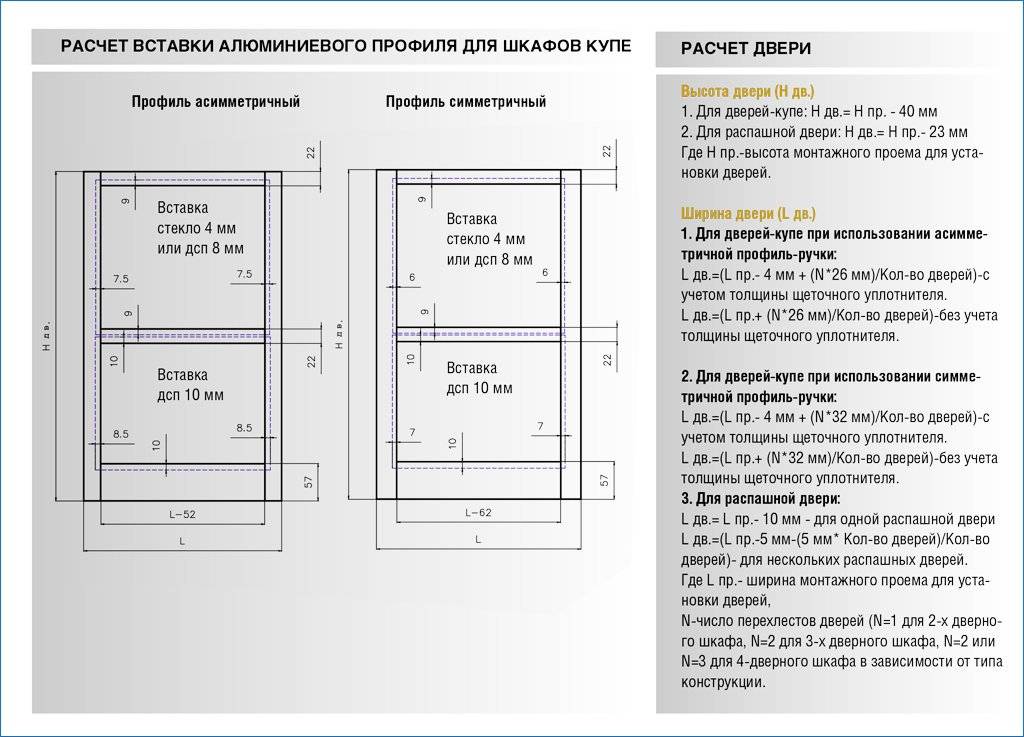 Проведение расчетов – важнейший этап в самостоятельном создании раздвижных дверей любой системы хранения. Точность необходима для подготовки элементов створок. Рассмотрим порядок проведения расчетов для профилей Aristo.