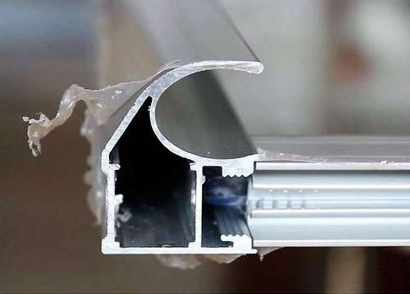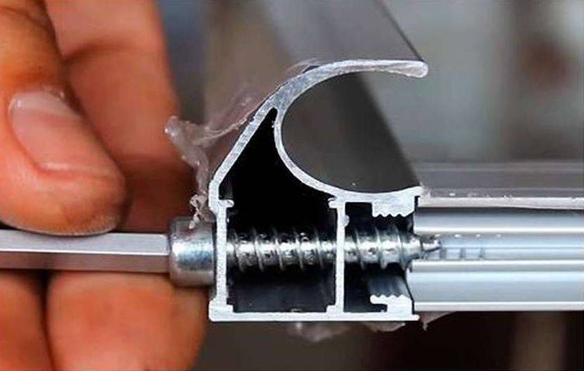 | 8 | Для коррекции толщины листов наполнения, перед их монтажом в пазы профиля уложите уплотнитель Если это стекло или зеркало, уплотнитель натягивается на полотно.