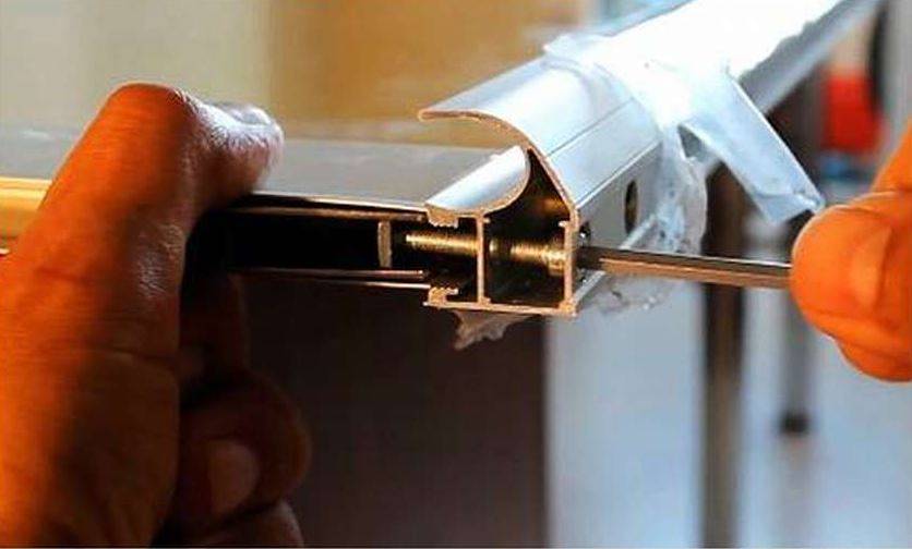 Просто вставьте в пазы профиля части наполнения и пристукните по торцу