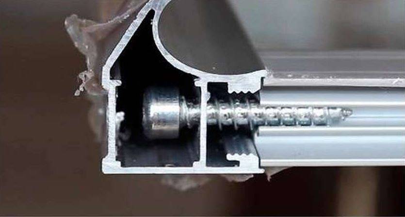 Саморезы, которые стягивают части горизонтально и вертикально расположенного профиля. Этих элементов должно быть 4 штуки;