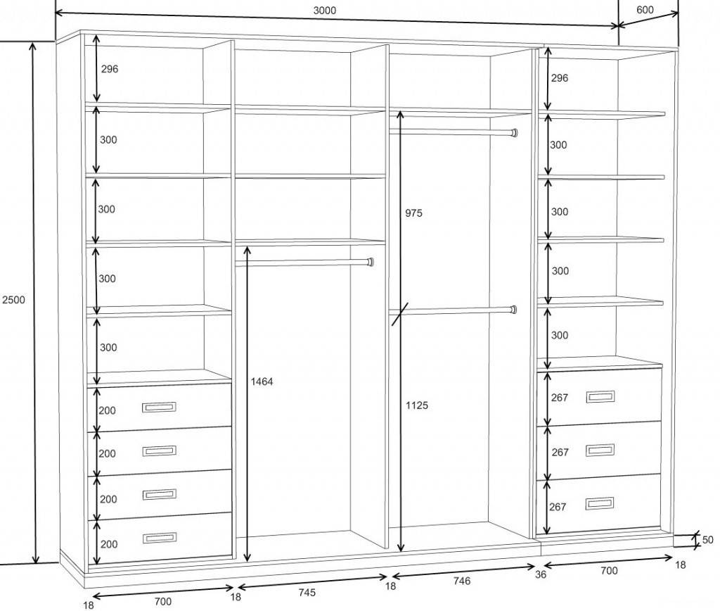 Варианты размеров шкафов в зависимости от количества дверей и наполнения