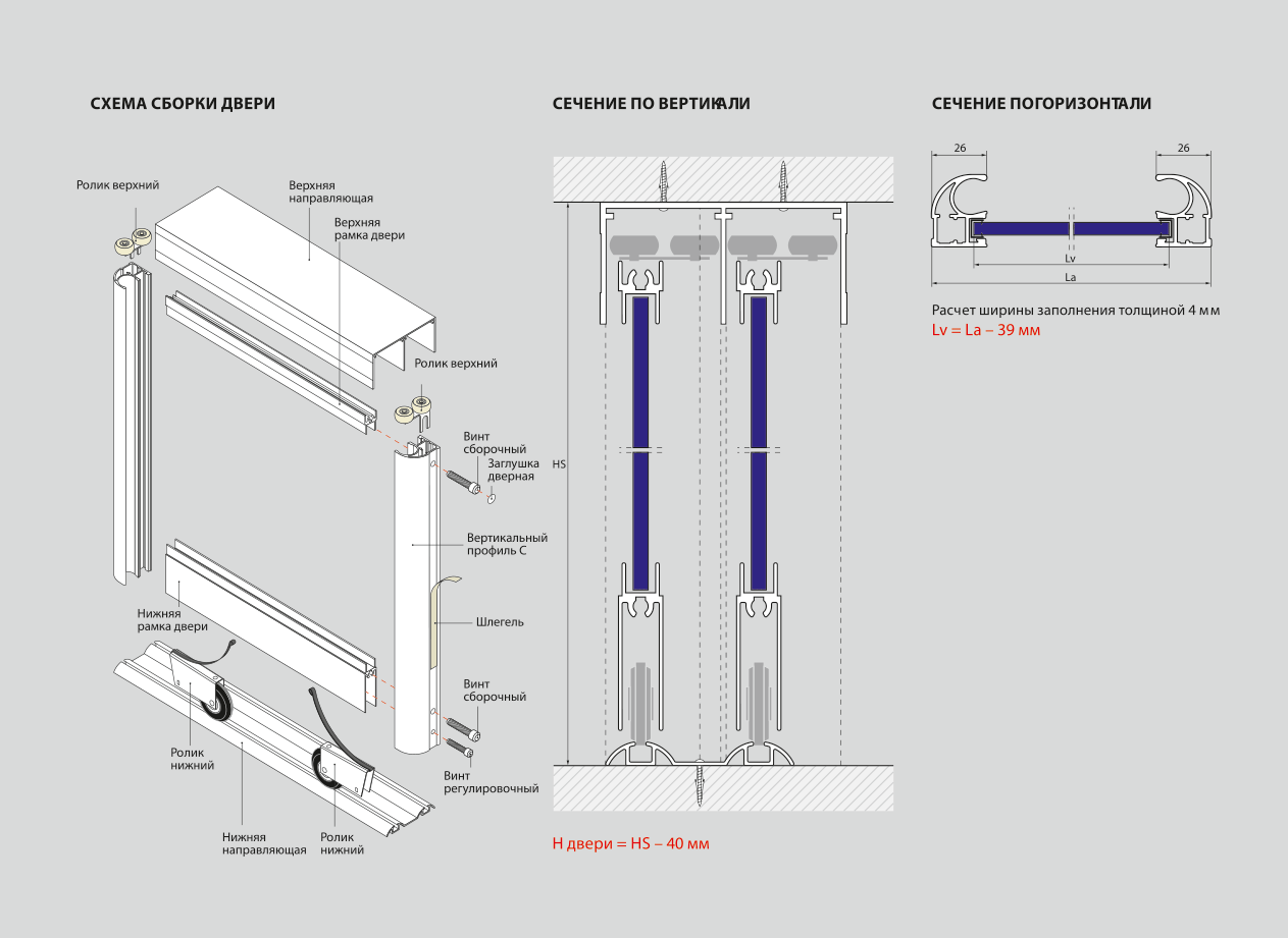 Проведение расчетов – важнейший этап в самостоятельном создании раздвижных дверей любой системы хранения. Точность необходима для подготовки элементов створок. Рассмотрим порядок проведения расчетов для профилей Aristo.