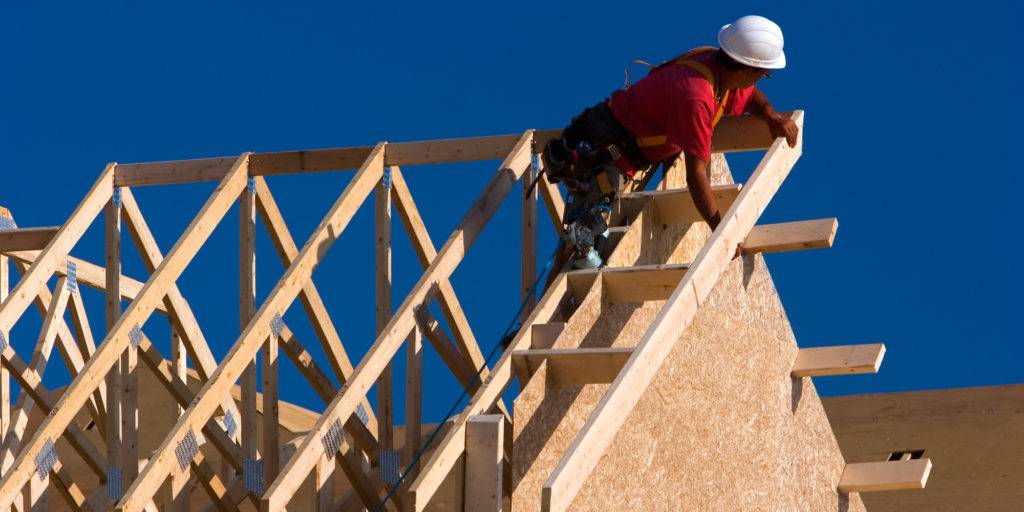 - Установка на стены готовых замкнутых треугольников – стропильных ферм.