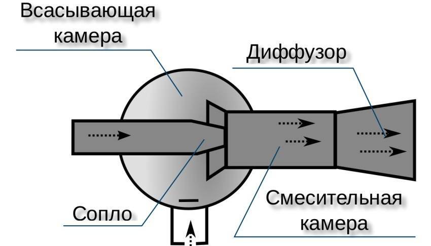 - Эжектор. Элемент конструкции, который обеспечивает необходимую тягу.
