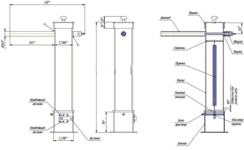 Отдельно следует поговорить о таком узле коптильни, как дымоход. Несмотря на кажущуюся простоту, это один из самых важных узлов всей системы. Именно он и выполняет помимо основной (доставки дыма к мясу) ещё четыре важных функции: