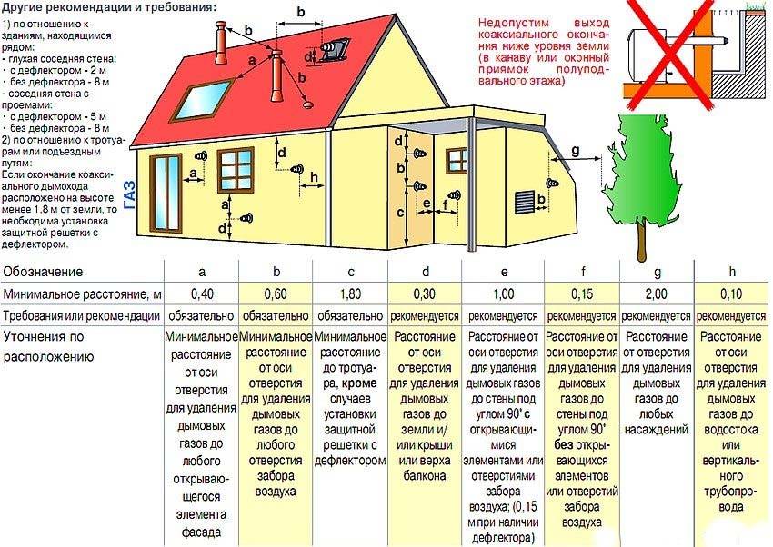 Схема установки газового дымоходаРасположение дымохода для газового котла