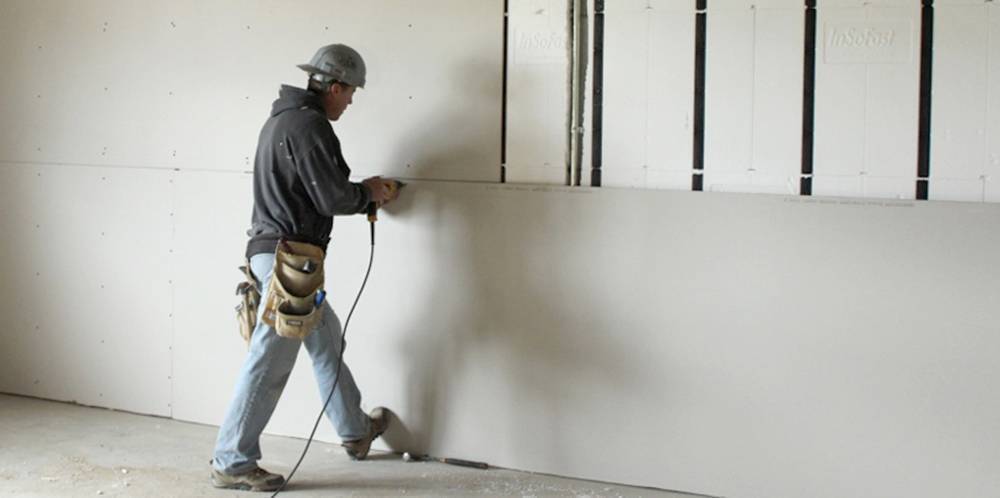 - Если подразумевается дополнительная теплоизоляция, на этом этапе укладывают в ячейки каркаса утепляющий материал.