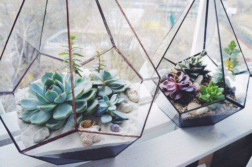 Несколько флорариумов с разными растениями выглядят очень эффектно