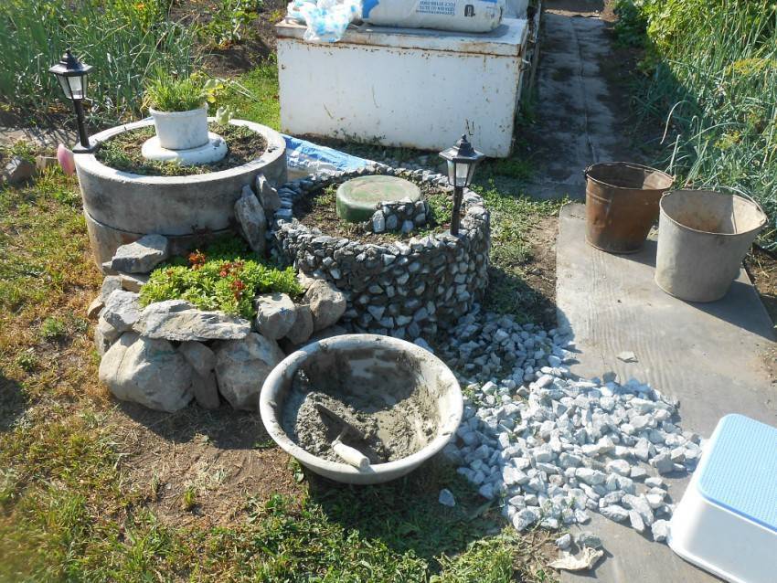 - Бетонный раствор надо аккуратно уложить по всей окружности на высоту 15-25 сантиметров.