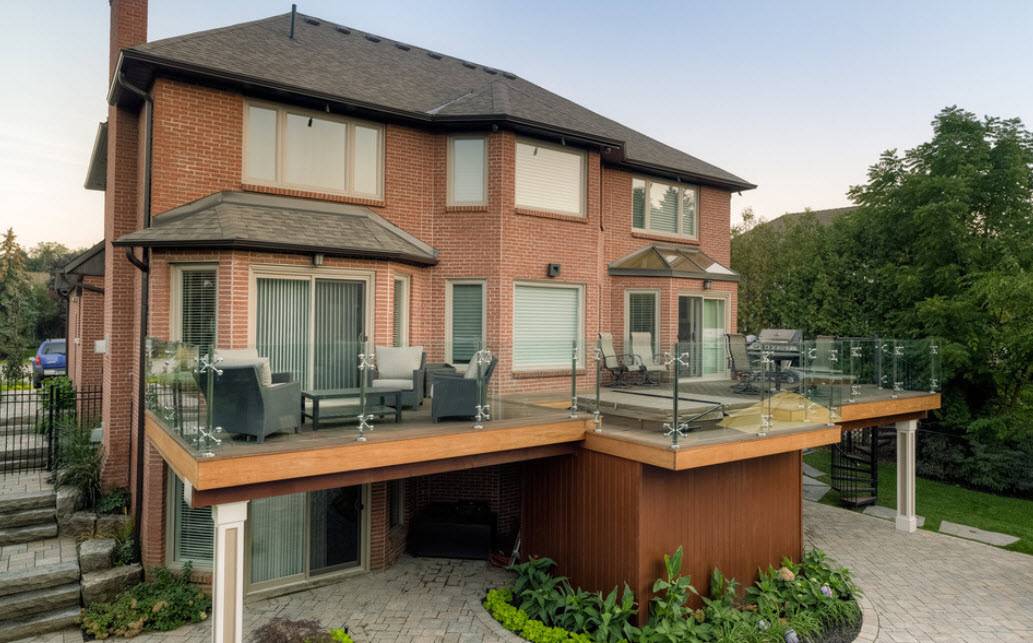 - Хай-тек. Такой стиль и оформление фасада подойдет для тех, кто любит быть неординарным, выразить себя и свое «Я». Для отделки фасада используется натуральный кирпич, однако для поддержания стиля его нужно комбинировать с декоративным стеклом или металлическими вставками.