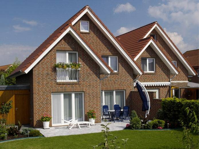 - Красный и коричневый цвета лучше использовать для домов классического стиля.