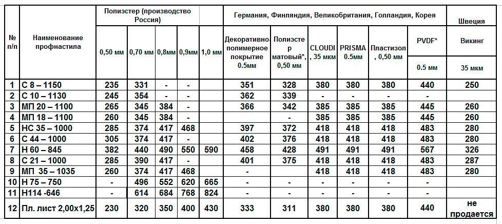 - Металопрофиль. Около 60 листов. Цена за квадрат – около 170 рублей. В итоге около 10 тысяч.