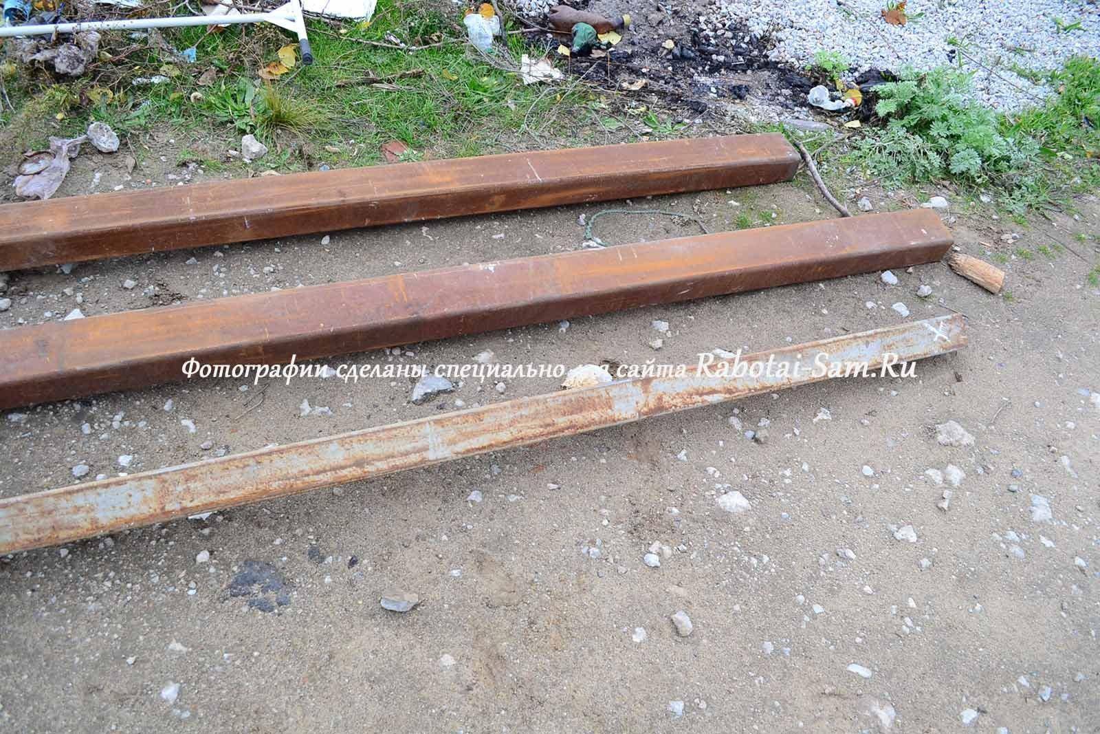 В случае беседки они изготавливаются из труб диаметром 50 — 75 миллиметров. На нижний край трубы навариваются лопасти с заточенными краями или, что лучше, готовый литой наконечник. Желательно использовать оцинковку; в крайнем случае, черная сталь защищается битумной мастикой.