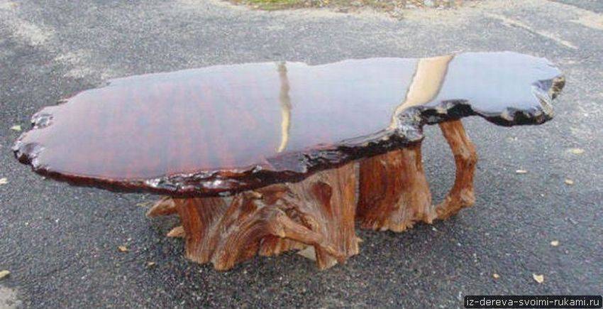 Не особо легко найти такой большой пенёк, но журнальный столик вышел – отличный.