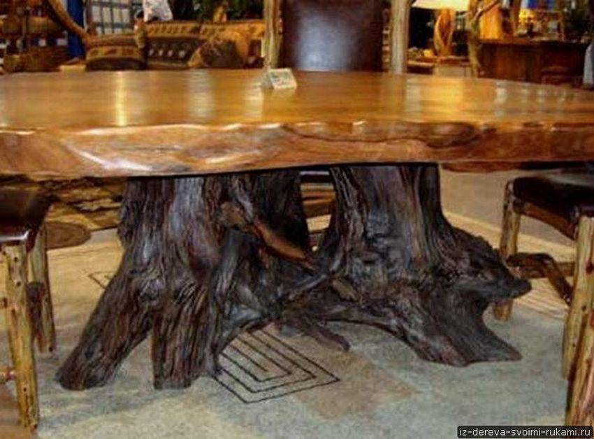 Стол – важный атрибут любого дома. За столом происходит самое главное действие – трапеза. Учёные советуют пользоваться деревянными столами – они не выделяют токсины, как пластиковые. Стеклянные столы — более опасные и бывают хрупкими. Хорошие столы из дерева стоят не мало денег, и многие решаются сделать стол своими руками. Самый дешёвый и простой способ – сделать стол из пенька.