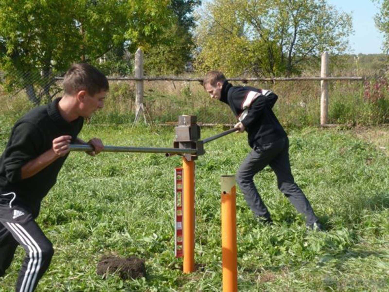 - Выкапывают ямы в размеченных местах на глубину промерзания почвы.
