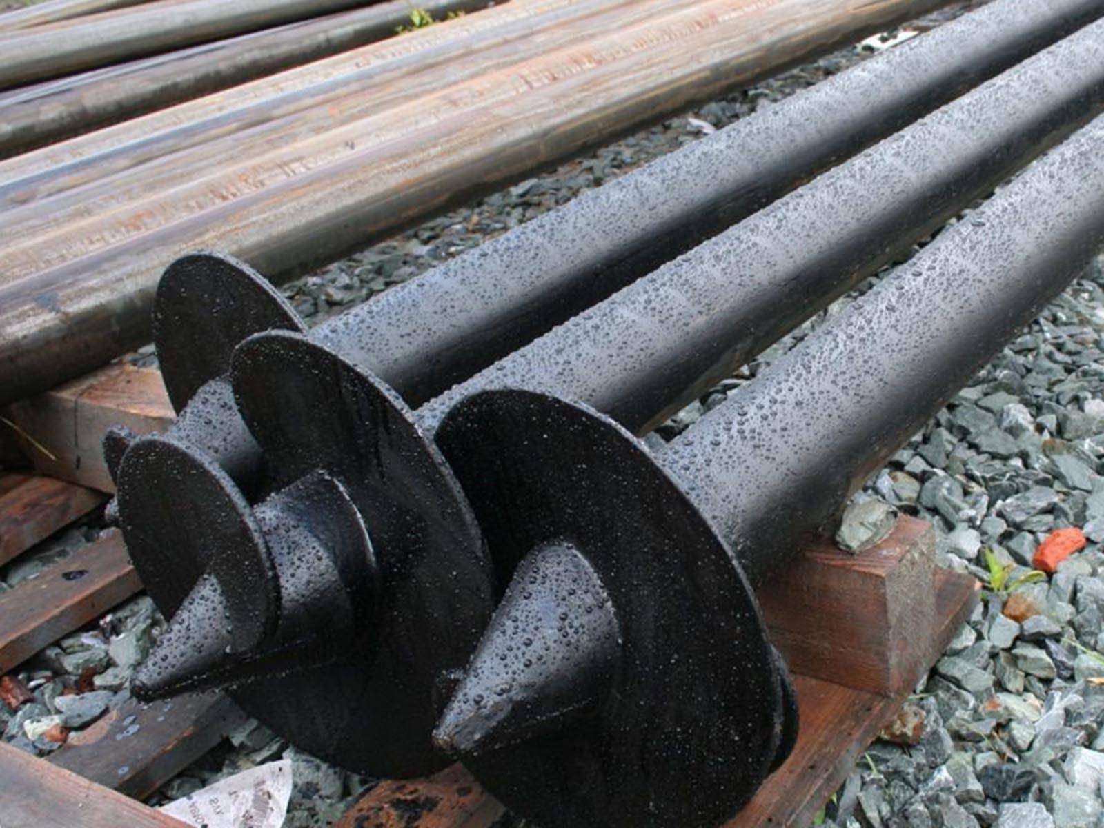 Разновидностью столбчатого основания является винтовая конструкция. Фундамент в этом случае обустраивается из специальных свай с лопастями, которые позволяют с минимальными усилиями вкрутить опоры в землю. При этом никакой спецтехники применять не нужно. Установку свай производят вручную.