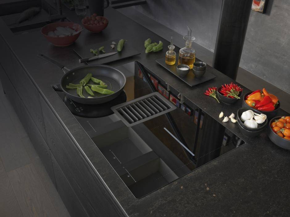 - Варочная панель со встроенной вытяжкой — в случае этой варочной панели нам не нужно отдельно включать варочную поверхность и вытяжку. Варочная панель сделает это за нас. Дополнительным преимуществом этого решения является идеальное соответствие конструкции пластины и экстрактора.