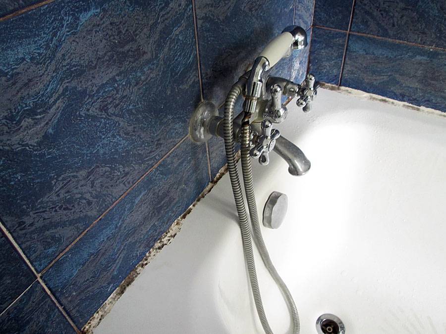 Если между ванной и стеной есть зазор, то в него будет попадать вода, которая в этом месте долго не сохнет, способствуя росту плесени