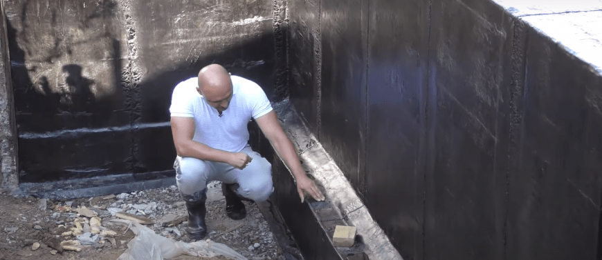 Очень важно, чтобы поверхность была максимально ровной, а также ее нужно предварительно высушить. Обмазочная гидроизоляция может быть повреждена, когда котлован засыпается грунтом