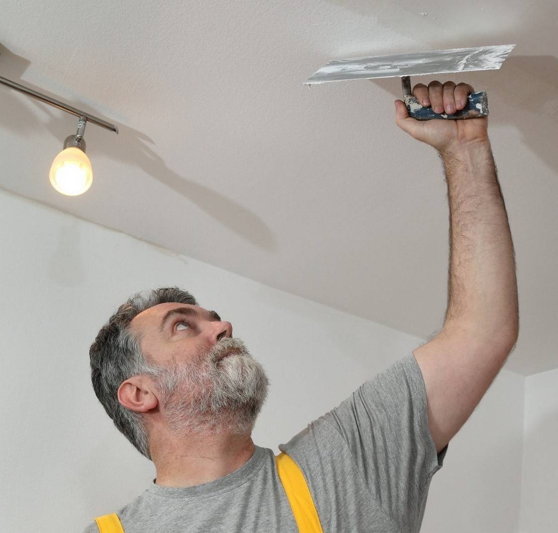 - Убрать из комнаты всю мебель, чтобы обеспечить беспрепятственный доступ к любой точке потолка;