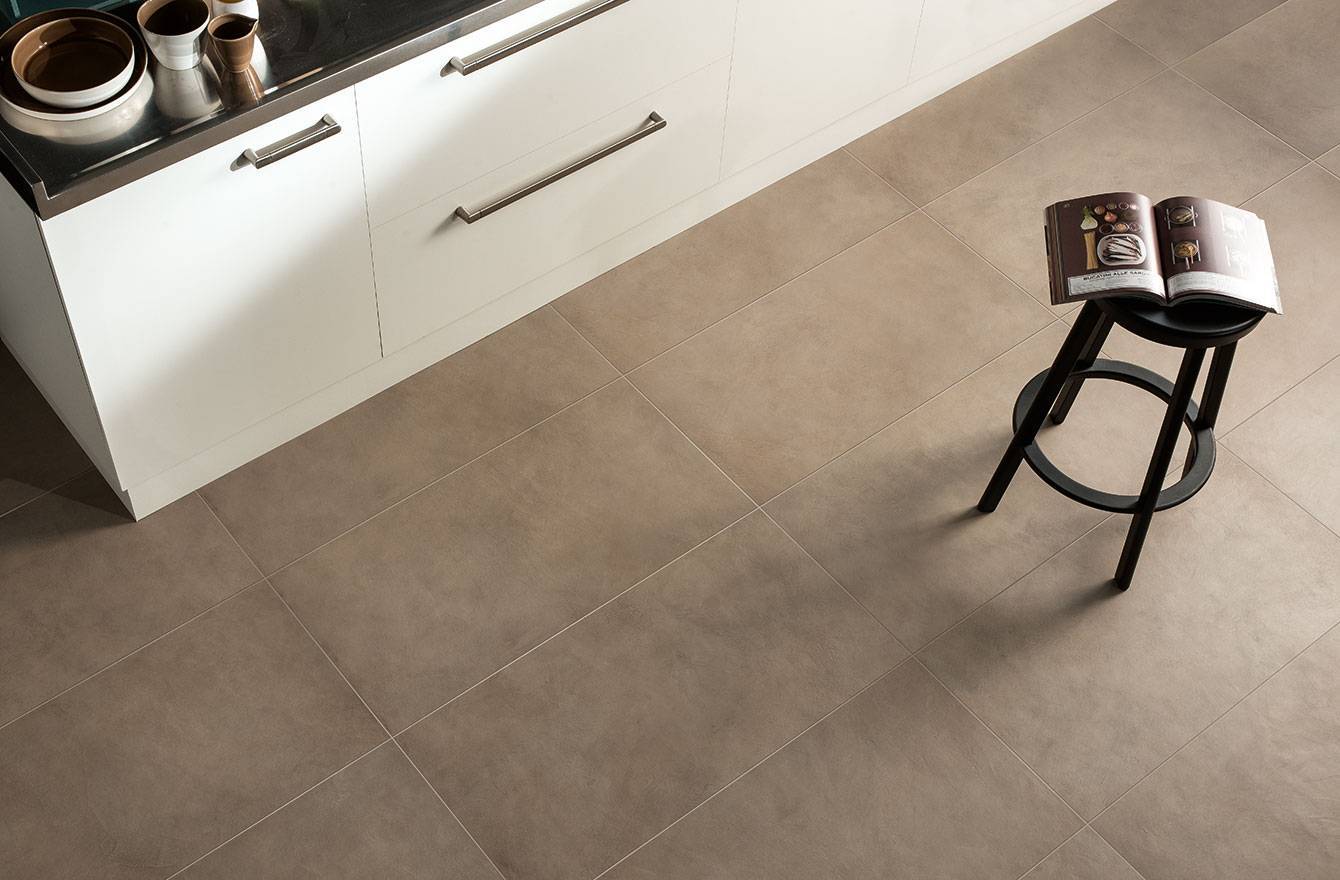 Матовая керамогранитная плитка. Благодаря своей твердости, устойчивости к влажности, шероховатой поверхности – что создает анитискользящий эффект, этот вид хорошо подходит для влажных зон и мест с повышенной весовой нагрузкой. Используют в кухнях, ваннах, отделки при домовой территории, площадок перед гаражом. Внешний вид отличается тусклостью и шероховатостью. Плюсом матового керамогранита является его дешевизна относительно других видов. Стоимость такой плитки ниже другого керамогранита, поскольку после обжига, она больше не подвергается дополнительной обработке для придания особых эстетических свойств.
