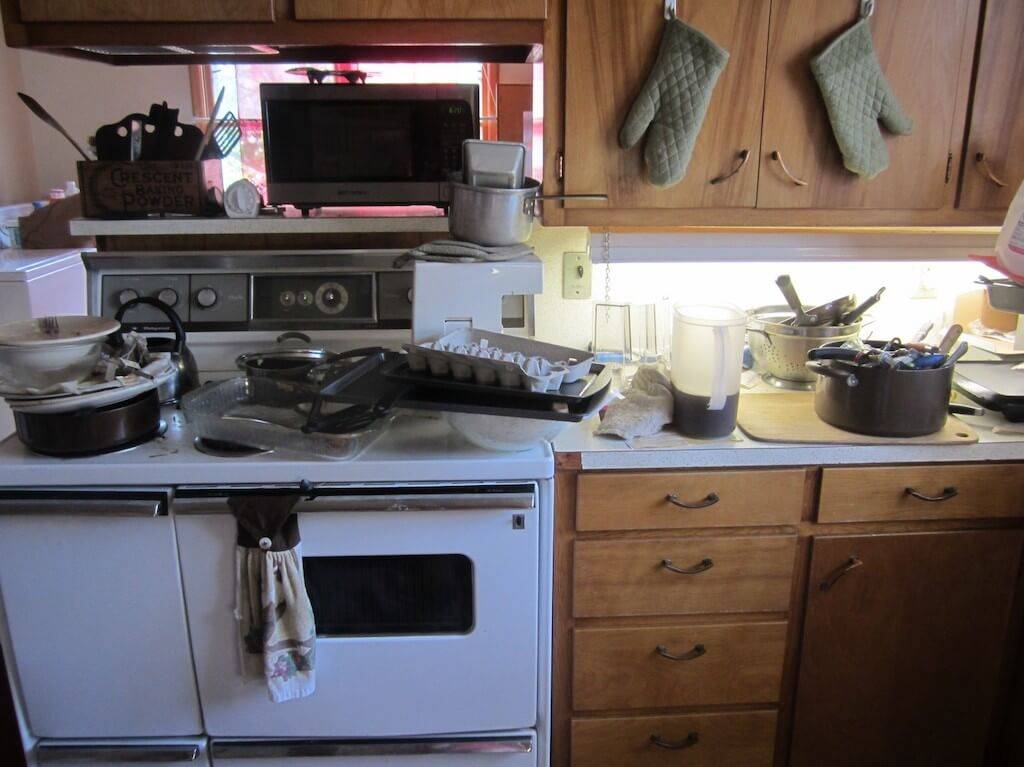 Ошибка № 9. Открытые полки на кухне. Да, это современно и стильно, но на полках и предметах на них будет скапливаться большое количество пыли, грязи, жирных капель и нагара (все преимущества и недостатки открытых полок на кухне мы рассматривали здесь и здесь).