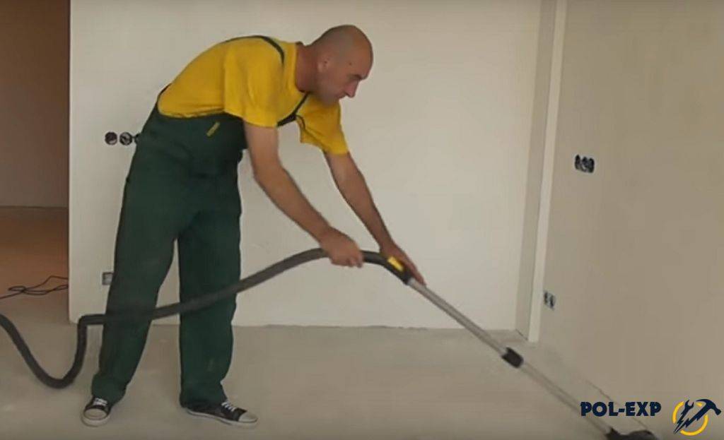 - Поверхность должна быть идеально чистой. Для очистки пола лучше взять пылесос.
