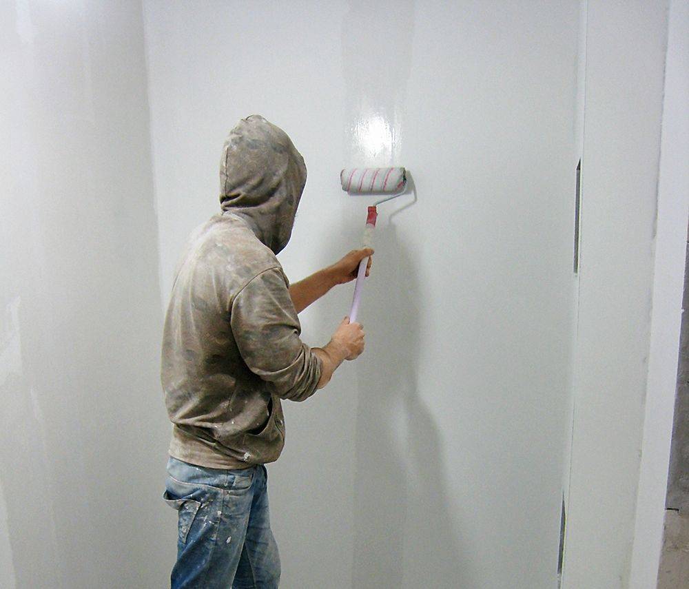 - Для повышения адгезии и избавления от сухой пыли выполняется обработка грунтовкой.