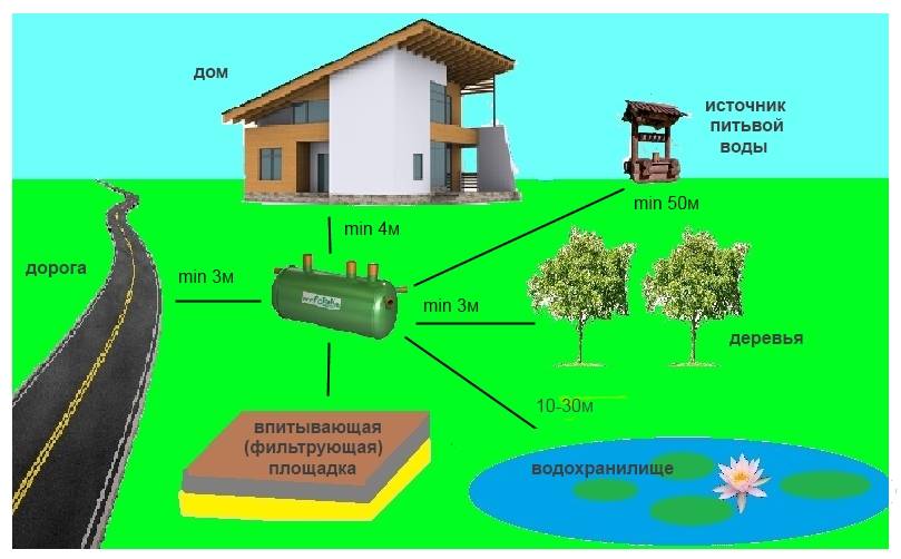 При обустройстве септика необходимо строго придерживаться санитарных норм