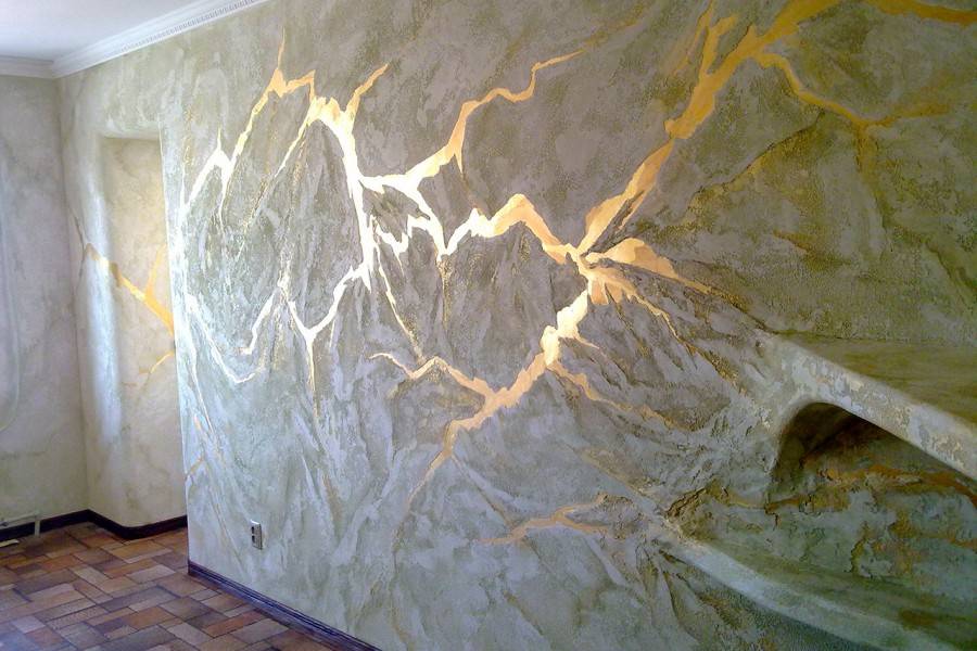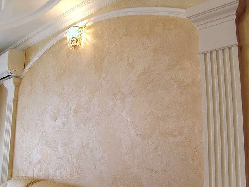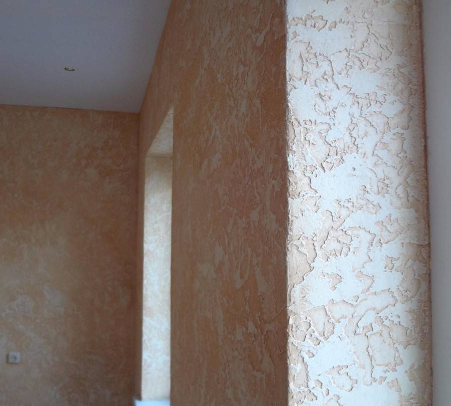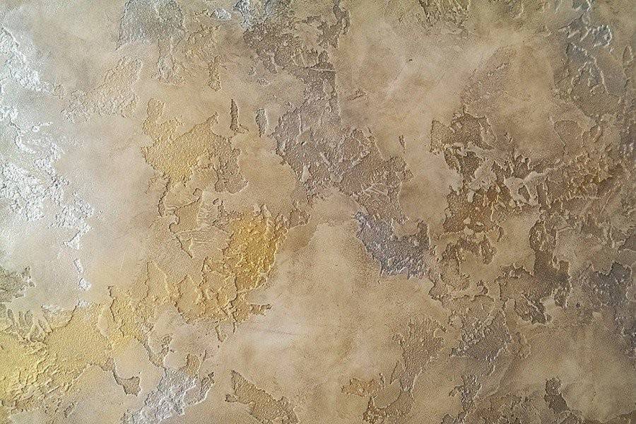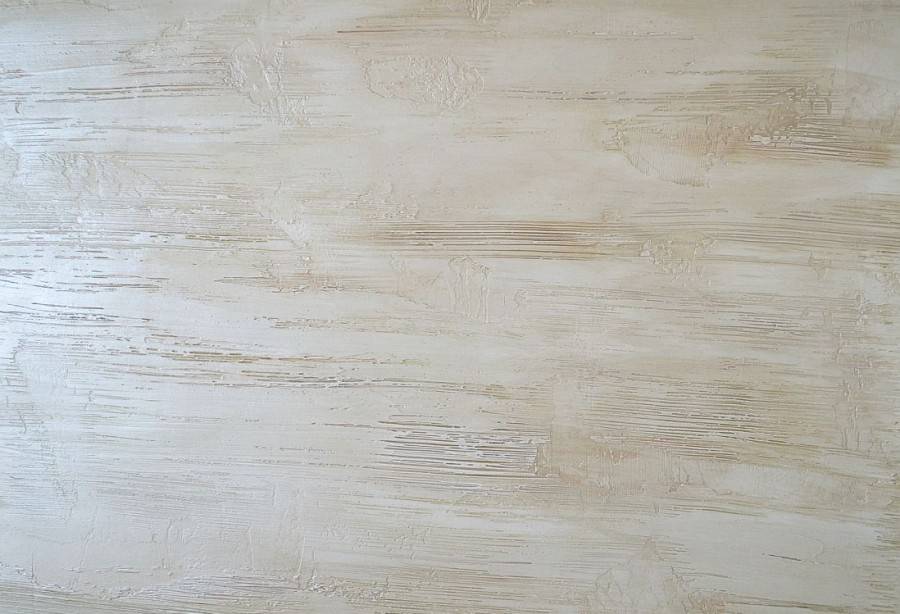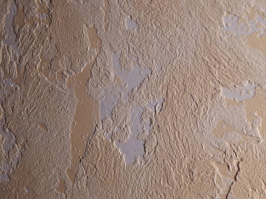 Техника размывки сложнее сухой кисти, так как требует больше времени и усилий для получения желаемого эффекта. На базовый слой наносим краску на один или несколько тонов темнее основы. Даем ей немного времени подсохнуть и вытираем мокрой тряпкой. В итоге темная краска остается только в углублениях, ее верхний слой полностью стирается, просвечивается фоновая краска. Если вы где-то слишком смазали краску и она не проступила в углубления, наносим ее повторно. В конце обязательно покрываем окрашенную декоративную штукатурку 2–3 слоями лака на водной основе.