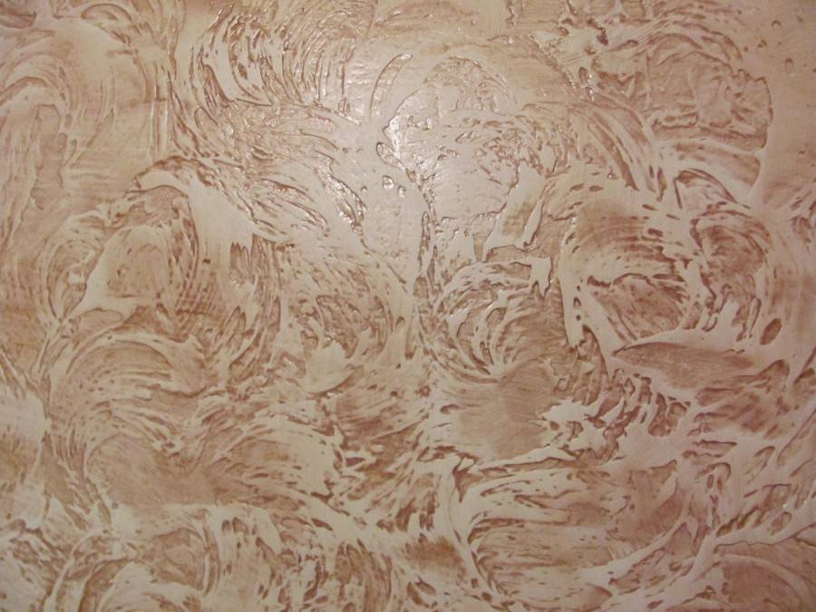 Интересные фактуры получаются если не подсохший слой декоративной штукатурки обработать морской губкой, чуть вдавливая и слегка поворачивая ее круговыми движениями. Щетка с жесткой щетиной позволяет нарисовать: