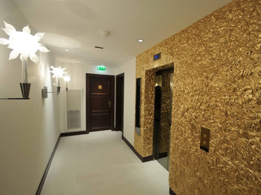 - Шикарно в интерьере коридора смотрится венецианка с эффектом мокрого шелка. Ее смело можно комбинировать со стеклом, деревом или металлом.