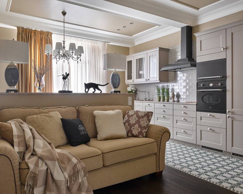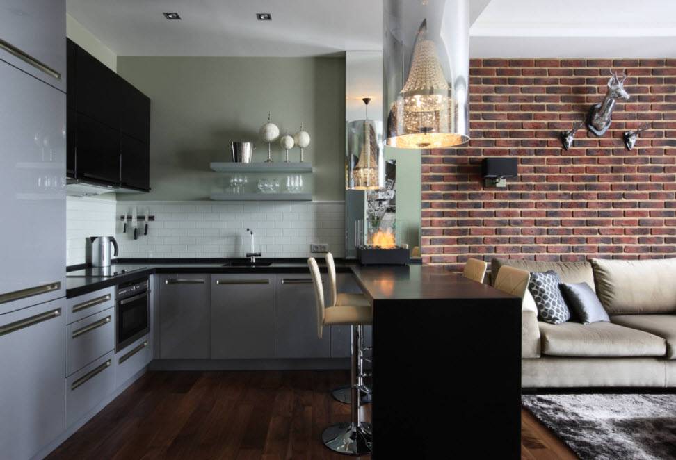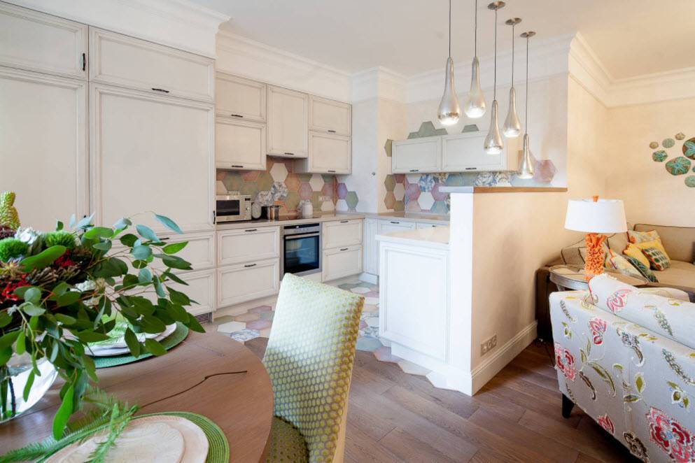 Собственники небольшого жилья могут попробовать отказаться от традиционной кухни, которая представляет собой отдельную комнату, и сделать квартиру-студию, что особенно приветствуется в 2018 году. Можно существенно увеличить простор кухни, стерев четкие границы между функциональными зонами.