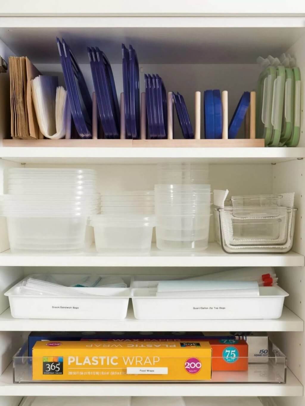 Хороши на кухне и разделители. Они не дают предметам перемешиваться и теряться. Так легче находить и доставать нужные принадлежности.