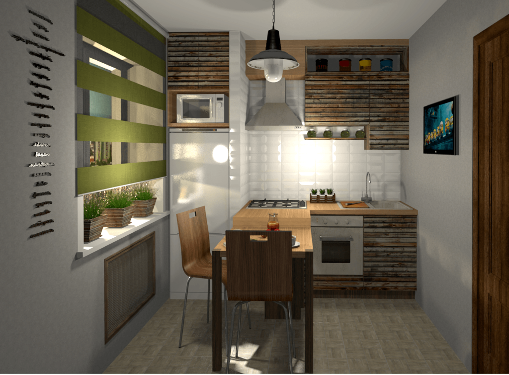 Впрочем, не всегда на маленькой кухне можно поставить что-то кроме гарнитура и небольшого обеденного стола. В этом случае вас выручать стены! Использовать их можно разными способами — не только для того, чтобы установить навесные шкафы.