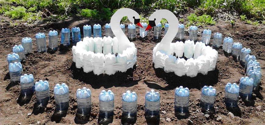 Поделки для сада из бутылок и оформление сада цветами (фото)