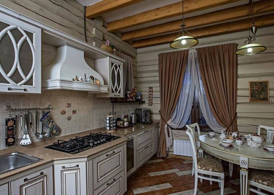 При планировании интерьера кухни в деревянном доме нужно учитывать несколько моментов: