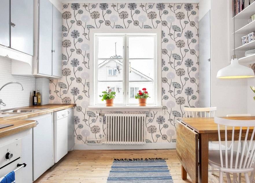 Надо сказать, что маленькая кухня в деревянном доме приветствует белый фон вдвойне. Если стены не отделываются вовсе, то их пиломатериал должен быть произведен из влагостойких хвойных пород.