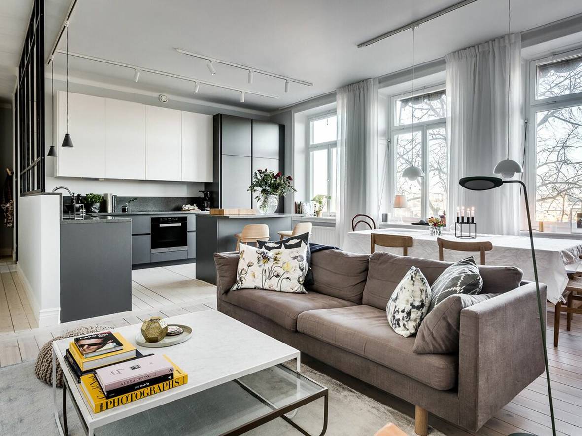 С точки зрения обустройства большого помещения, в котором соединены зоны кухни, столовой и гостиной – непростая задача.