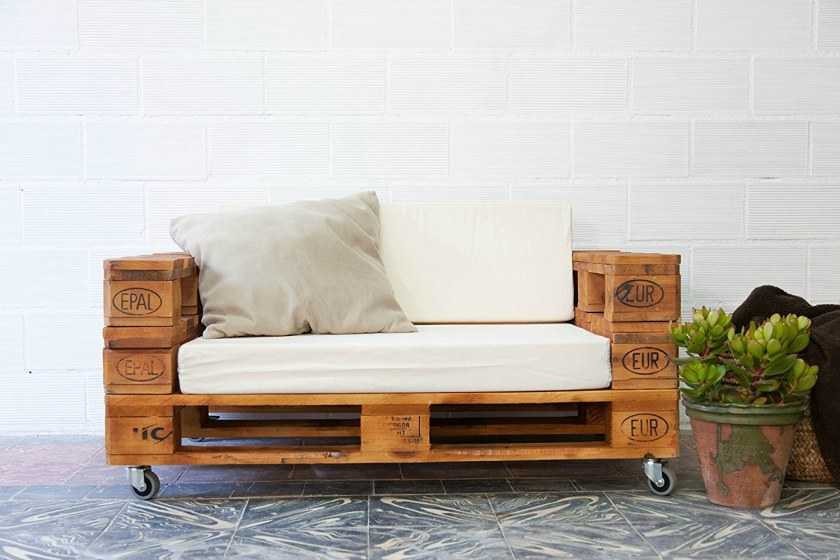 Полезный совет! Чтобы получить подвижную конструкцию, которую будет удобно перемещать с одного места на другое, мебель из поддонов можно установить на ролики или колеса. Желательно, чтобы они имели блокираторы.