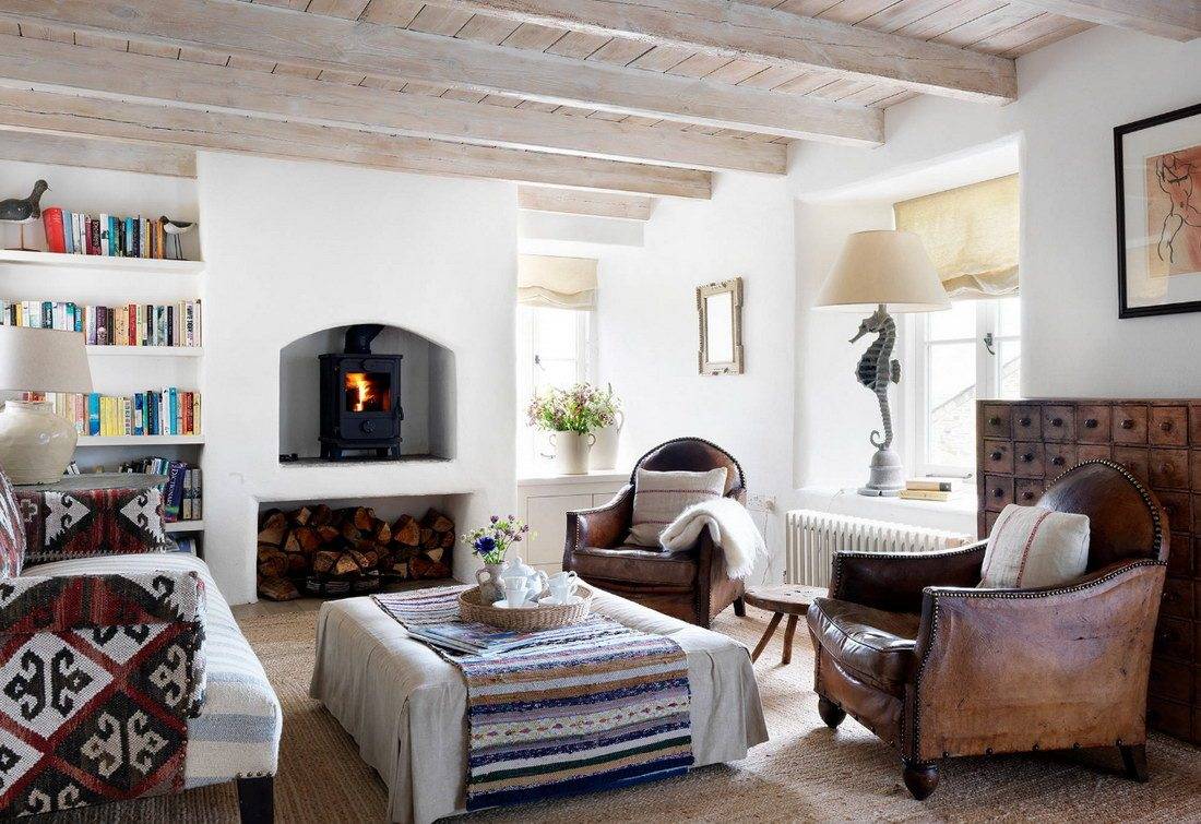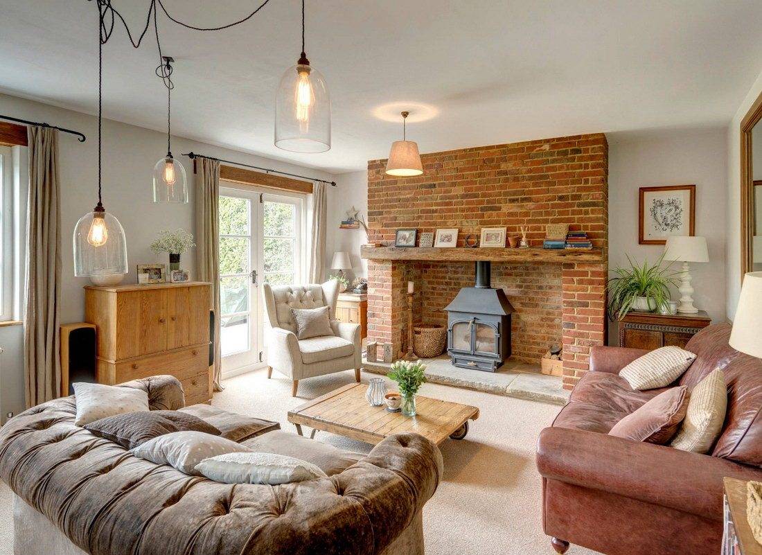 В гостиных, выполненных в деревенском стиле, например, кантри или прованс, можно увидеть на фото камины из кирпича. Они могут иметь различную конфигурацию, которая может включать как встроенный духовой шкаф и наличие одной или нескольких варочных поверхностей, так и их отсутствие.