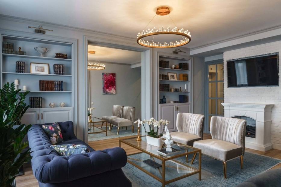 Дизайны гостиной могут быть самыми разными, но в каждый из них камин добавит ноту свежести и гармонии.
